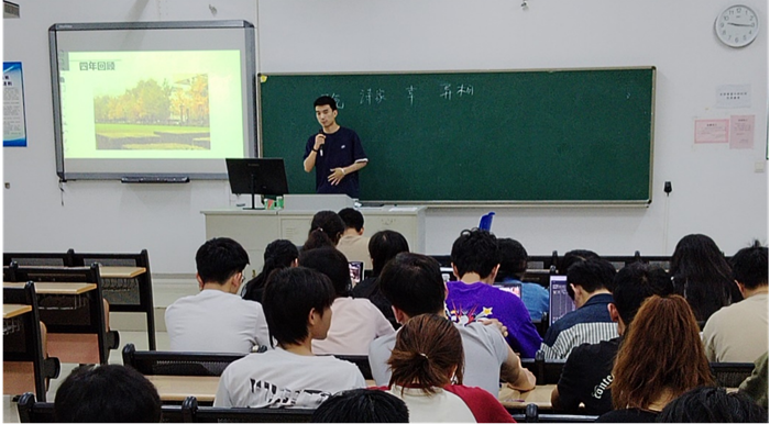 陈然同学结合自己大学四年所见所闻所感,用鲜活的事例,分享了他和身边同学通过努力成功考研和考公的事迹,深入剖析了大学本科阶段面临的困惑和挑战,以及如何结合自身情况,找到真正的“我”,并为之持之以恒的奋斗。强调了人生成就来自于每一步的积累和努力,鼓励新生们要主动积极作为,提早制定计划,提早树立目标。无论是考研、考编还是工作,要为毕业后的自己提早做好准备,成功都离不开坚持不懈的努力和积极的心态。