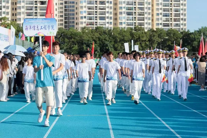 开幕式上,公司员工方阵的同学们英姿飒爽、精神抖擞,向大家展示了公司的特色操语——船舶旗语操,充分展现了海信院专业特色;教工方阵的老师们昂首阔步,精神饱满,用笑容传达着他们积极向上、热情洋溢的精神风采。老师同学们斗志昂扬,一同期待着运动会的开始。