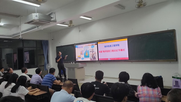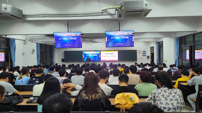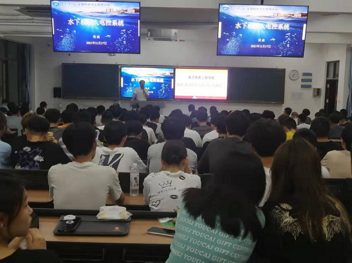 郭威主任运用多媒体的形式,围绕几种典型的水下机器人、水下机器人电控系统、传感器与执行器、水下机器人控制技术、海洋信息技术的典型应用、对教学和科研的体会六个方面作了精彩的报告。从水下机器人的发展历程切入,层层深入,并与在场的老师和员工进行学术交流,报告精彩热烈,气氛活跃。
