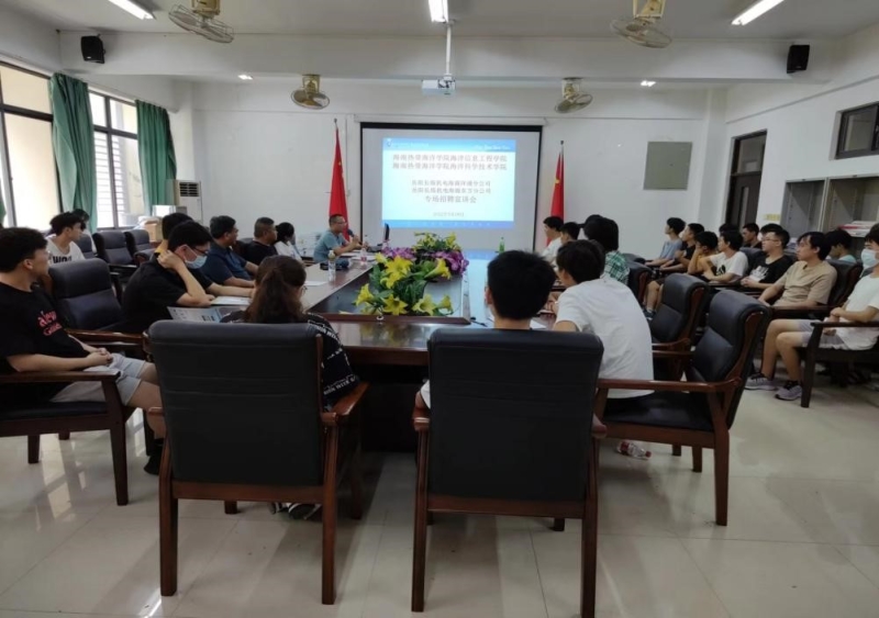 应公司郑泽龙书记、王连明副经理邀请,28日下午,湖南岳阳长炼机电工程有限公司洋浦分公司总经理刘进军、副总经理张明禄,东方分公司何耀总经理、龚浩书记一行6人,在9304会议室开展了就业和实习宣讲会,有70多名同学参加。宣讲会上,岳阳机电公司介绍了企业的情况,播放了企业宣传片,2022届毕业生李蓉蓉同学亲身谈自己的入职感受,并就员工提出的问题和疑惑进行现场解答。学工办主任邸泽军老师,就毕业生选择就业岗位和用人单位的需求,为现场员工进行指导。现场就业意向的有8位同学。